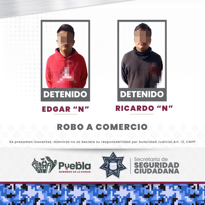 Elementos de la Policía de la Ciudad, detuvieron a Edgar “N”, de 23 años de edad y a Ricardo “N”, de 32 años de edad, señalados por su probable participación en el robo de una farmacia ubicada en inmediaciones de la colonia Jesús García.