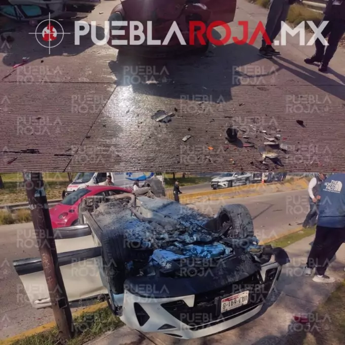 Un aparatoso accidente vial registrado durante la tarde de este jueves en la Vía Atlixcáyotl, a la altura del bulevar Municipio Libre (más conocido como bulevar Las Torres), dejó como saldo al menos tres personas lesionadas de gravedad y cuantiosos daños materiales, luego de una colisión múltiple que terminó en volcadura.