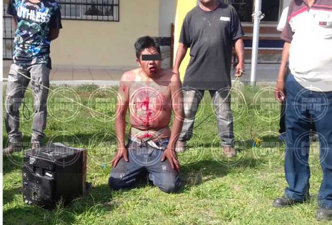 José Luis Torres fue sorprendido junto con otros individuos robando un equipo de sonido de una vivienda, por lo que pobladores lo capturaron y golpearon, cabe mencionar que sus cómplices lograron darse a la fuga.