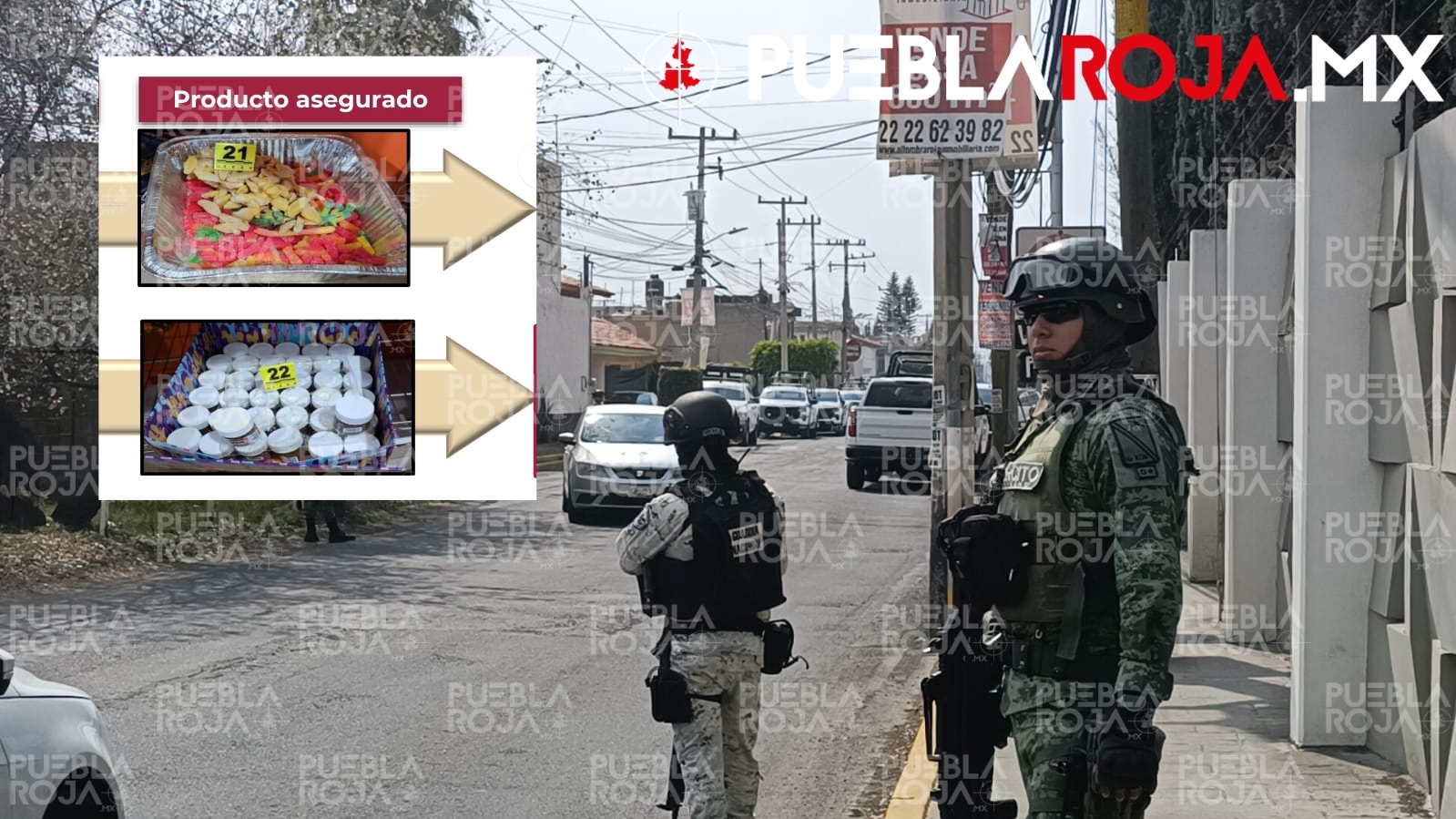 El Ejército Mexicano y Guardia Nacional, desmantelaron un narco laboratorio en el municipio de San Andrés Cholula, donde se elaboraban drogas sintéticas agregadas en dulces de reconocidas marcas para su distribución en secundarias, preparatorias y universidades poblanas.