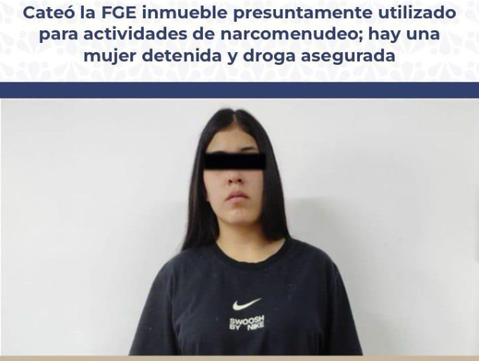 Para combatir actividades relacionadas con el narcomenudeo, la Fiscalía General del Estado de Puebla llevó a cabo un cateo en un inmueble ubicado en el municipio de Cuautlancingo, donde se logró la detención de una mujer presuntamente en posesión de diversas dosis de droga.