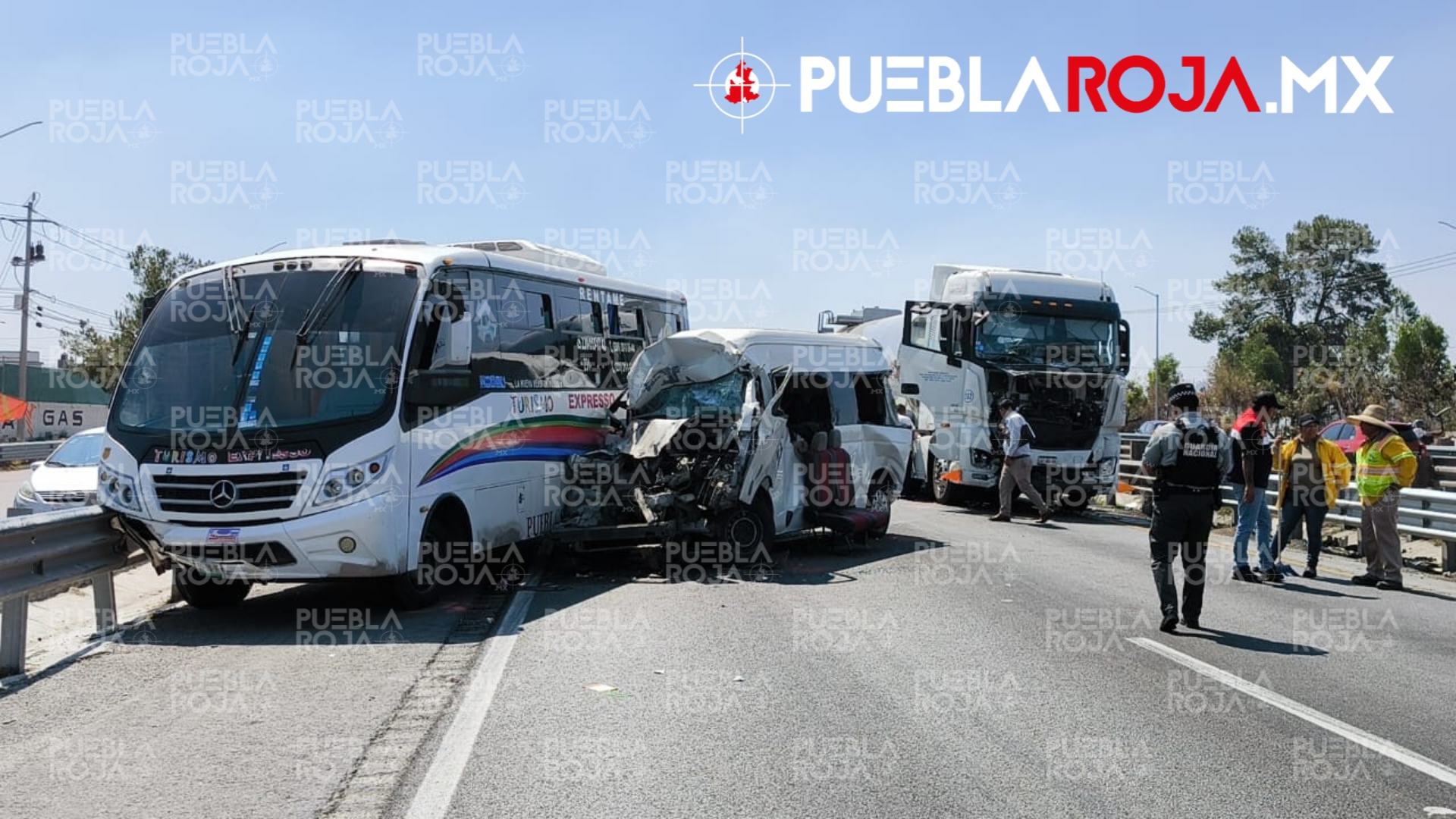 Dieciséis lesionados fue el saldo que dejó un choque múltiple en el kilómetro 132 de la autopista Puebla-Córdoba (en dirección a Puebla) a la altura de la entrada a Santa María Xonacatepec. Los involucrados fueron un tractocamión que llevaba acopladas dos pipas, una camioneta tipo Urvan y un microbús que transportaba a estudiantes y profesores del Centro Escolar Manuel Ávila Camacho de Teziutlán.