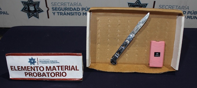 Es importante señalar que, durante la intervención, los uniformados que fungieron como Primeros Respondientes procedieron al aseguramiento de un objeto punzocortante y de un arma de electrochoques, comúnmente conocida como taser, mismos que fueron presentados ante el Agente del Ministerio Público como elementos materiales probatorios.