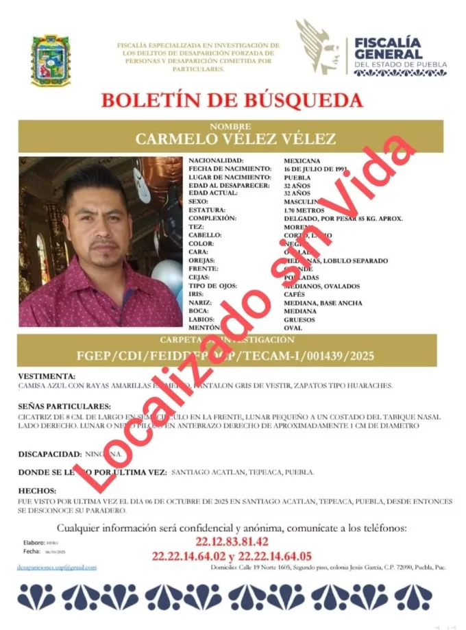 El cuerpo fue trasladado al Servicio Médico Forense de Tepeaca, donde más tarde fue identificado oficialmente como Carmelo V. V., el mismo mototaxista levantado en Tepeaca. El caso quedó asentado en la carpeta de investigación FGEP/CDI/CGEIHD/TEPEACA-I/000510/2025.
