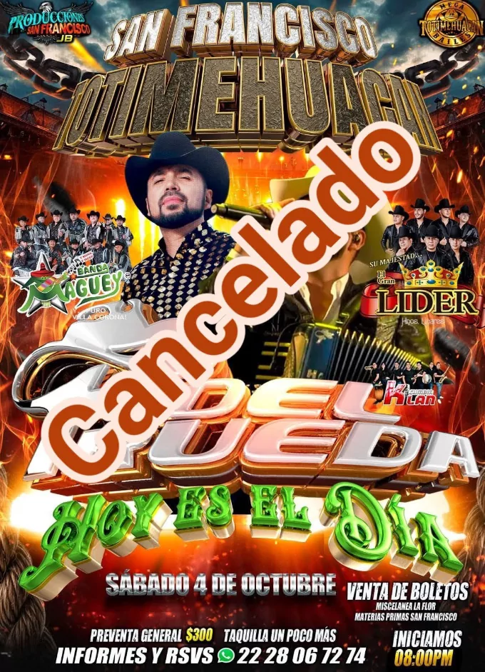 El artista, conocido por temas como “Enhorabuena” y “Tú ya eres cosa del pasado”, era el número estelar del baile de feria programado para el 4 de octubre. Los boletos se habían vendido en preventa entre 250 y 300 pesos, con la promesa de una velada de música regional encabezada también por Banda Maguey y otras agrupaciones.