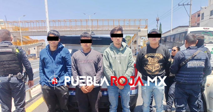 La coordinación interinstitucional permitió detener a Odilón N. de 29 años, Brian N. de 25 años, Miguel N. de 23 años y Adolfo N. de 20 años en inmediaciones de la colonia Seda Monsanto, perteneciente al municipio de Puebla.