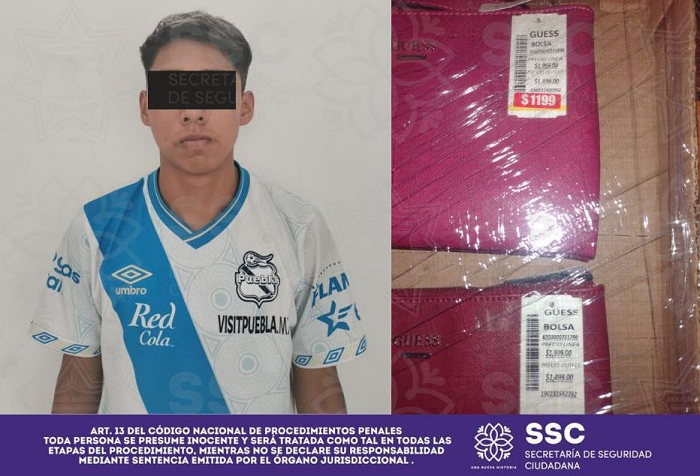 Elementos de la Secretaría de Seguridad Ciudadana (SSC) detuvieron a un poblano de nombre Irving Delfino de 18 años por robar artículos en un negocio de la Plaza Vértice en el vecino estado de Tlaxcala.
