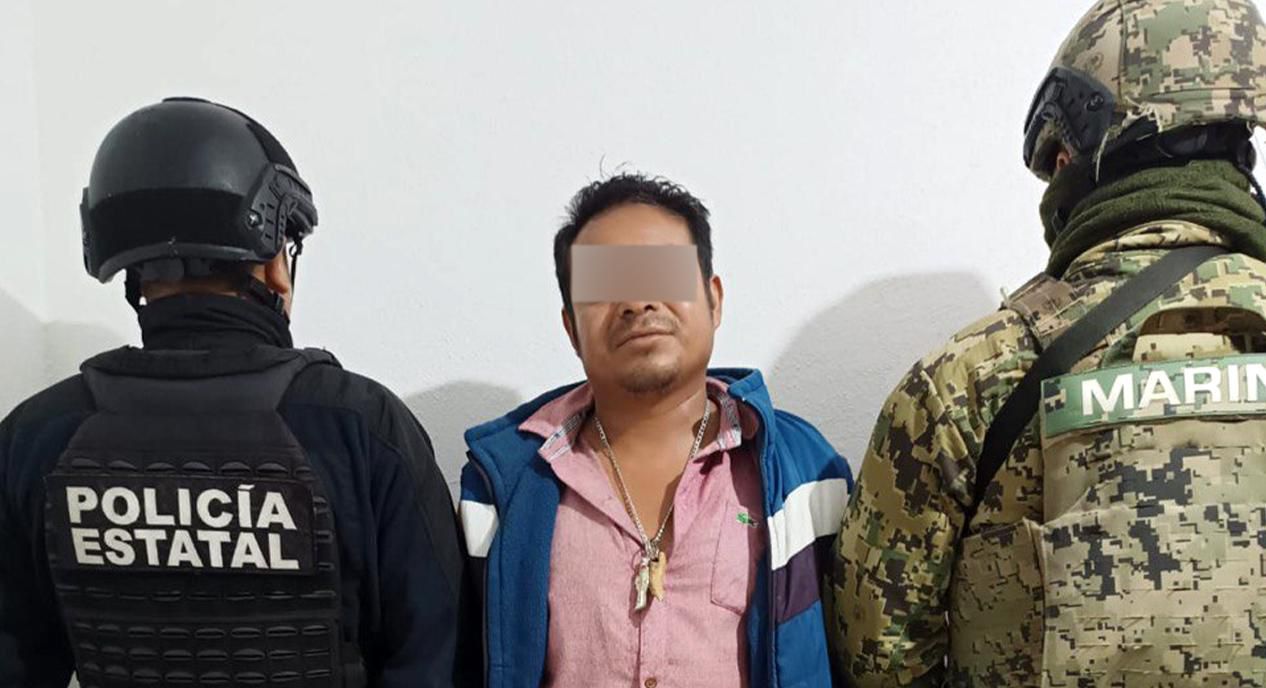 La acción se realizó en Chicahuaxtla, junta auxiliar del municipio de Tlaola, donde elementos de la Policía Estatal y de la Marina detuvieron a Basilio N., de 39 años.
