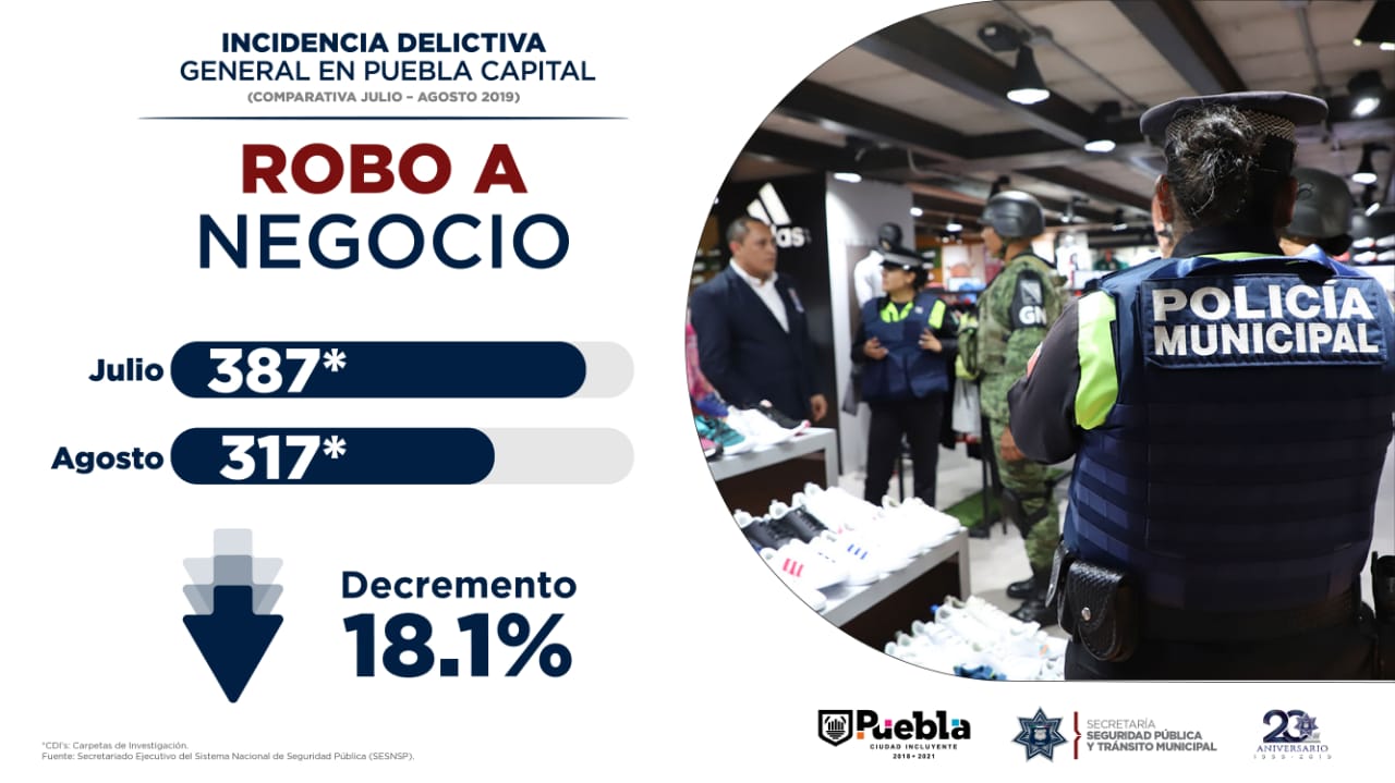 Incidencia delictiva en Puebla capital bajó 23.3 por ciento, revelan cifras del SESNSP (Gráficas)