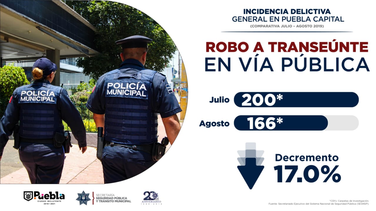 Incidencia delictiva en Puebla capital bajó 23.3 por ciento, revelan cifras del SESNSP (Gráficas)