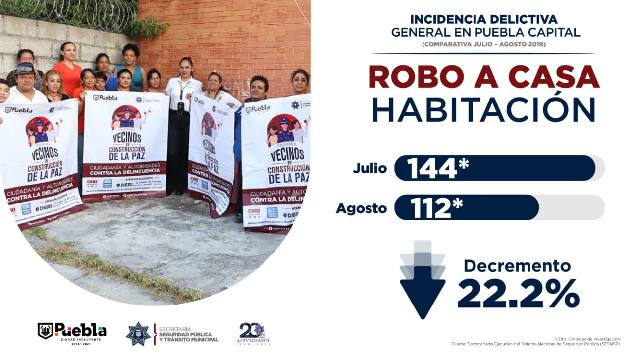 Incidencia delictiva en Puebla capital bajó 23.3 por ciento, revelan cifras del SESNSP (Gráficas)