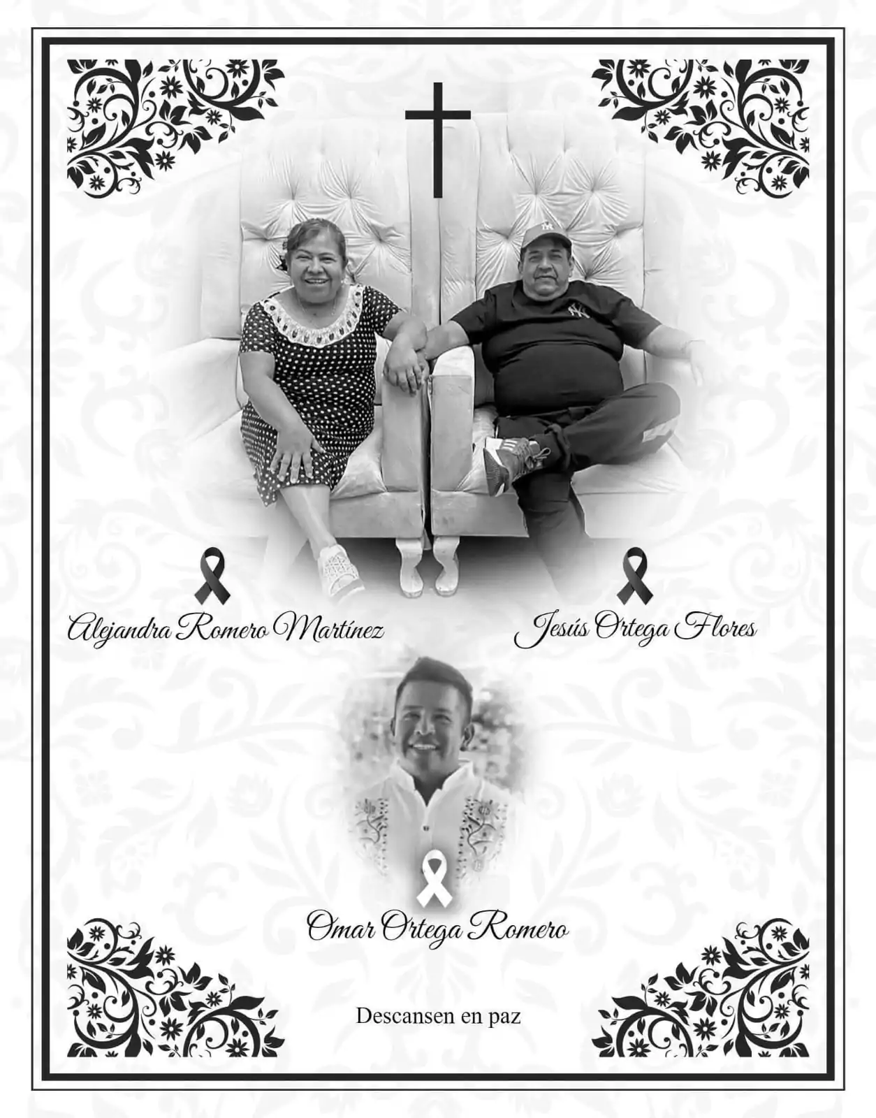 Las víctimas son Alejandra Romero, Jesús Ortega y su hijo Omar Ortega Romero.