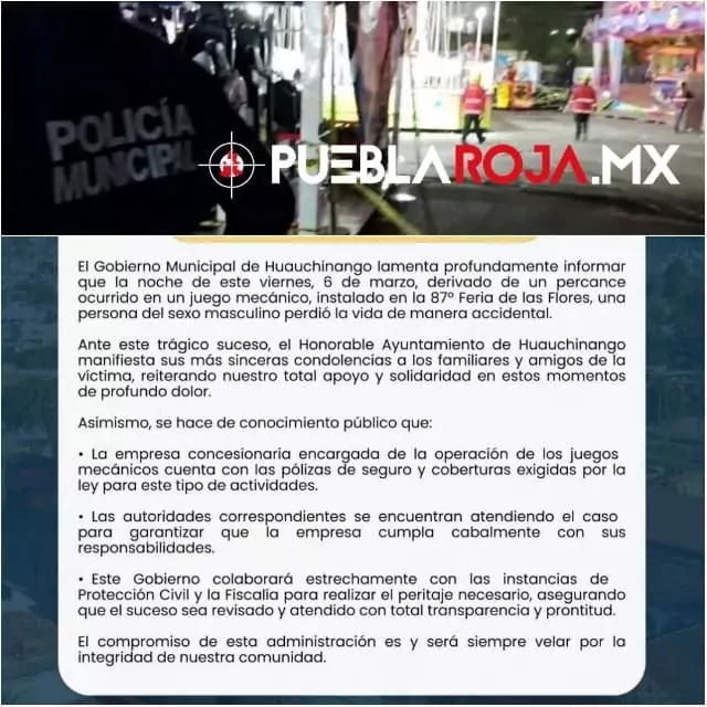Un hombre murió tras caer de un juego mecánico en la Feria 2026 de Huauchinango, Puebla, hecho que generó indignación entre asistentes y usuarios en redes sociales.