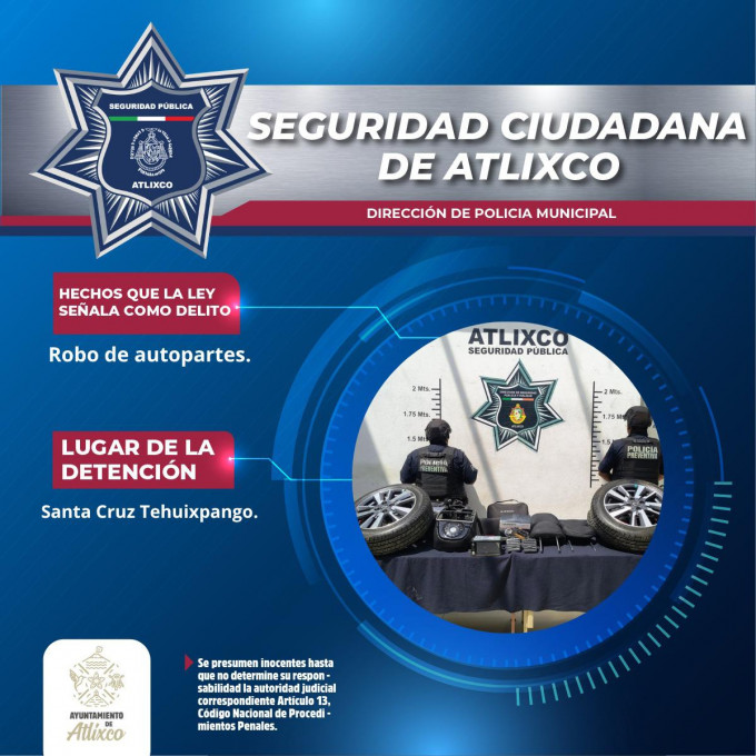 Esta acción refleja la eficacia del trabajo coordinado entre las unidades de patrullaje y el monitoreo en tiempo real, reafirmando el compromiso del gobierno municipal de Atlixco con la seguridad de la ciudadanía y la pronta respuesta ante hechos delictivos.