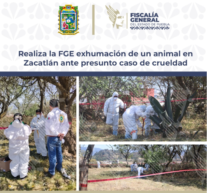 La Fiscalía General del Estado realizó en el municipio de Zacatlán, Puebla, la exhumación de “Lanuda”, un animal de raza mestiza que apareció sin vida con posibles muestras de crueldad.