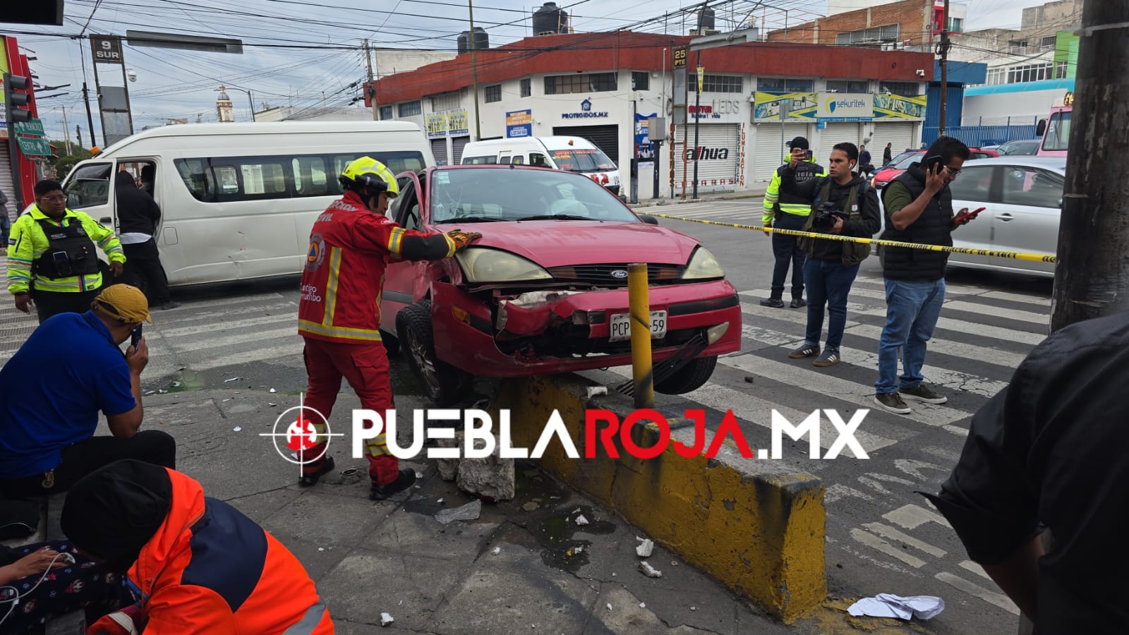 En un accidente ocurrido esta mañana en el crucero de la 9 Sur y la Avenida 25 Poniente, cinco personas resultaron lesionadas tras un choque entre un microbús de la ruta S-3 y un vehículo particular.