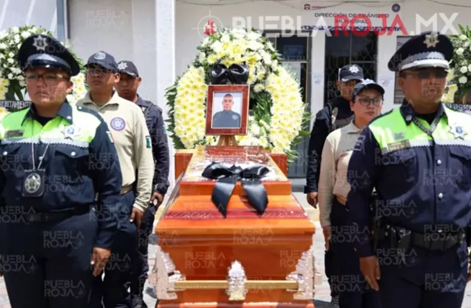 Rinden homenaje póstumo a policía asesinado en Tepeaca; su compañera sigue grave