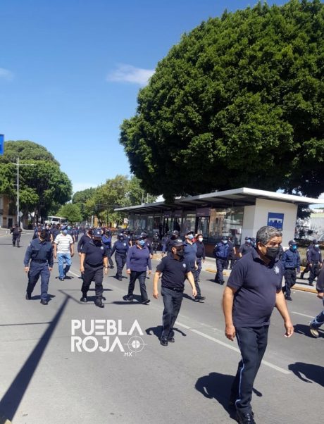 Elementos de la Secretaría de Seguridad Pública del Estado de Puebla mantienen su paro de labores y marchas en demanda de un incremento salarial y del seguro de vida contra enfermedades infecciosas como el Covid19.