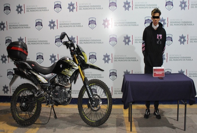 Debido a lo anterior, los efectivos dieron alcance al masculino y procedieron a su detención por su probable participación en hechos con apariencia de delito de robo a transeúnte. Adicionalmente, se recuperó lo robado y se aseguró una motocicleta marca Veloci, tipo XVR, color negro con amarillo, unidad en la cual pretendía darse a la fuga.