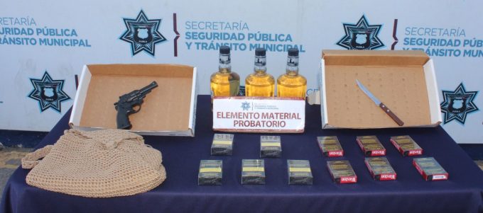 Por otra parte, elementos de Seguridad Ciudadana de la misma región operativa, Zona Siete, detuvieron en la colonia Arboledas de Loma Bella a Edgar “N.”, de 33 años de edad, quien fue señalado por un empleado de la cadena comercial Oxxo como responsable de desapoderarlo de botellas de licor y cajetillas de cigarros, artículos que posteriormente fueron recuperados. Durante la intervención policial, con sede en la calle 105 Oriente, también se aseguraron un arma tipo pistola y un objeto punzocortante.