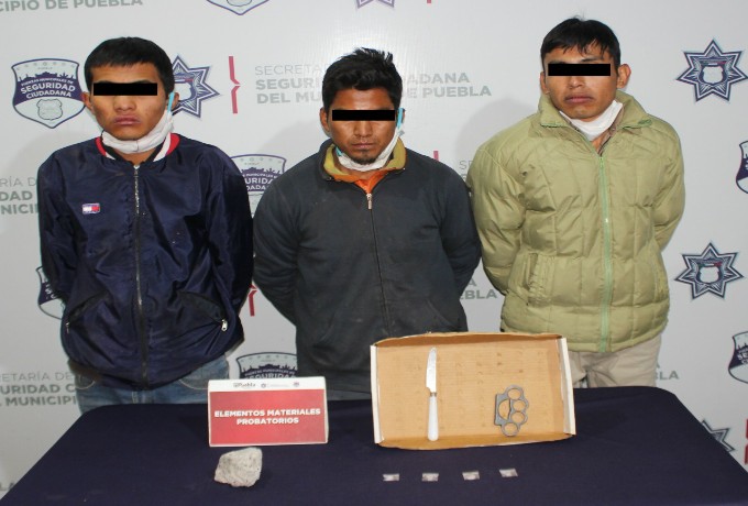 Como resultado del reforzamiento de acciones de inteligencia y reacción policial al norte de la capital, la Secretaría de Seguridad Ciudadana (SSC) del Municipio reportó, en las últimas horas, la detención de Juan Carlos “N.”, Joel “N.” y Erick “N.”, de 27, 26 y 19 años de edad, respectivamente, presuntamente relacionados en la comisión de múltiples robos en agravio de transeúntes y conductores que circulan sobre la Autopista México – Puebla.