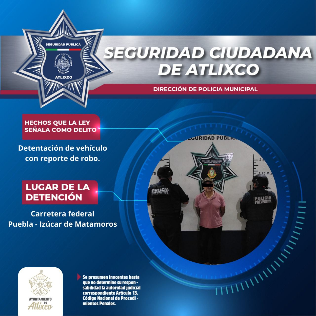 Gracias a la tecnología de videovigilancia instalada en puntos estratégicos del municipio de Atlixco, fue posible la localización y recuperación de un vehículo con reporte de robo vigente.