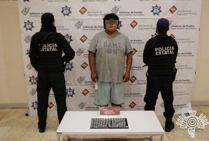HUEHUETLA, Pue.- Agentes de la Policía Estatal capturaron a Aldo M., presunto integrante de la banda de “Los Pelones” que opera en la Sierra Norte delitos como narcomenudeo, robo a transporte de carga, de vehículo y negocios.