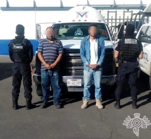 CIUDAD DE PUEBLA, Pue.- Dos hombres presuntamente dedicados al robo y venta de gas LP que roban de ductos de PEMEX, pertenecientes al grupo delictivo conocido como “Los Merino”, fueron detenidos por agentes de la Policía Estatal en la junta auxiliar de Santa María Xonacatepec.