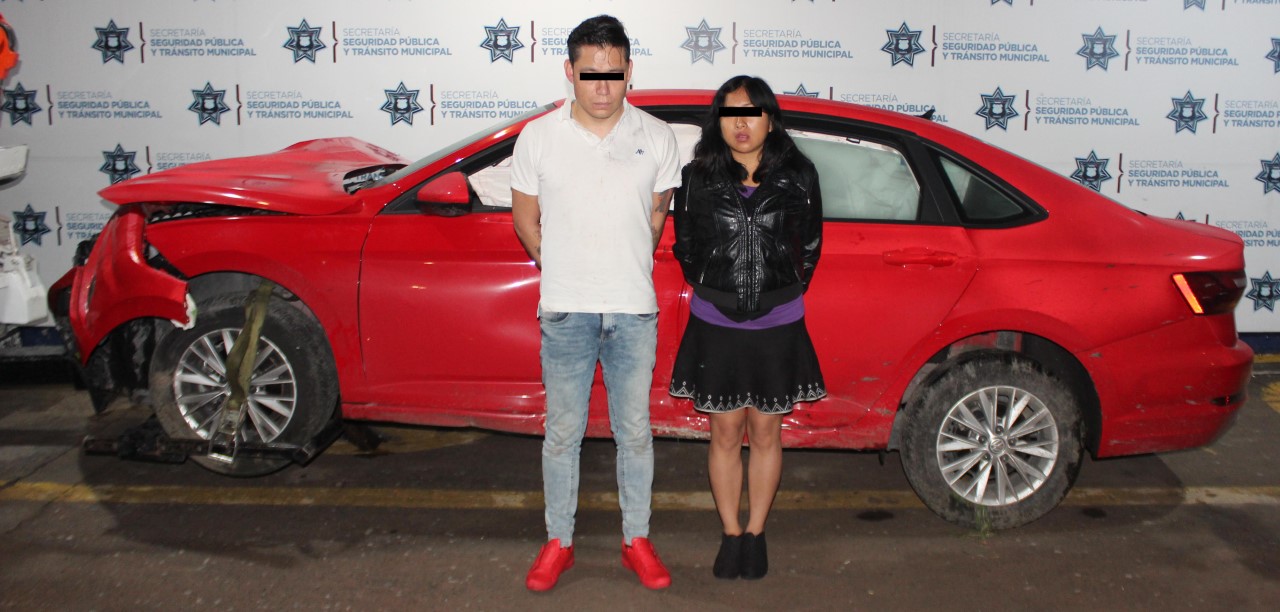 La Secretaría de Seguridad Pública y Tránsito Municipal (SSPTM) de Puebla detuvo en la colonia Los Volcanes a Enrique “N.”, de 29 años de edad y Ana Laura “N.”, de 28 años de edad, por su probable participación en hechos con apariencia de delito de robo de vehículo y daños en propiedad ajena.