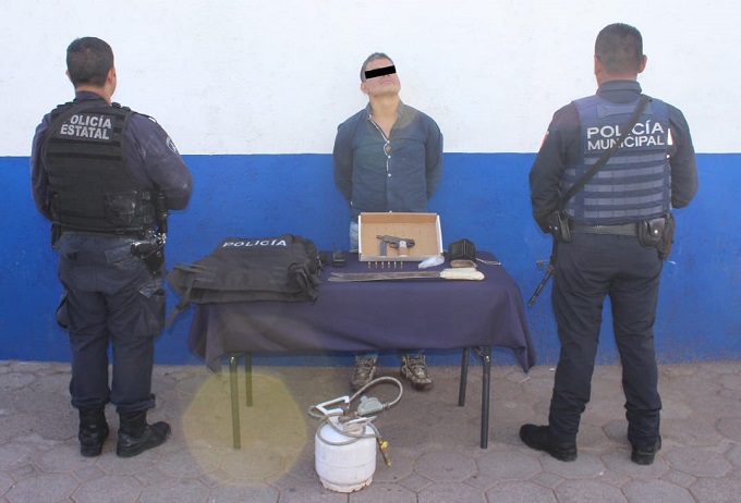 Al notar el arribo de ambas corporaciones, el masculino agredió a los elementos con flamas que emanaban de un cilindro para gas. Ante ello y con la finalidad de evitar un accidente que pusiera en riesgo la integridad de los colonos, brevemente los efectivos dieron alcance al varón, procedieron a su detención y cerraron la llave de paso del citado tanque.