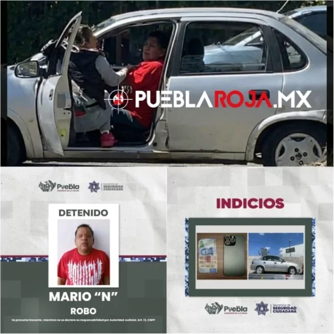 Elementos de la Policía Municipal de Puebla acudieron al lugar en apoyo de la víctima y lograron la detención de Mario N., quien cuenta con antecedentes penales.